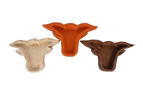 Celebrate western charm with this hand-carved Longhorn dough bowl, available in three hand-painted color finishes. Each piece is crafted from solid wood and showcases subtle variations in tone, texture, and size—approximately 10″ wide by 18″ long and 2″ deep—to highlight its authentic, rustic character. Perfect for displaying bread, fruit, or as a standout décor accent, it also makes a thoughtful, one-of-a-kind gift. Enjoy free variation in color and form, knowing that no two bowls are ever exactly alike.